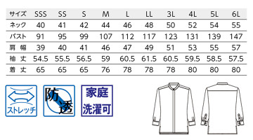●機能:ストレッチ素材、防透素材、袖口2個釦、裾両脇スリット