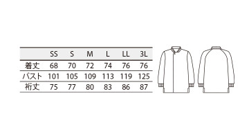 食品現場に最適な異物混入対策仕様のサービスコート。開きを防ぐファスナーと袖口リブで清潔性をキープ。