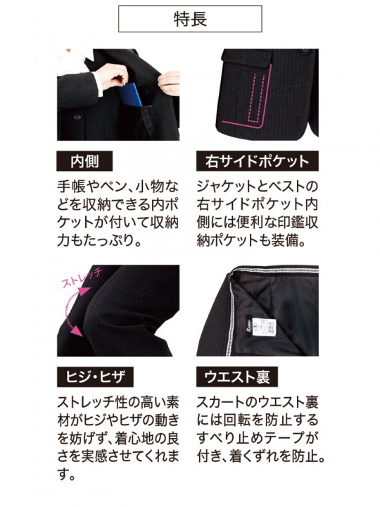 同素材のジャケットやパンツ、スカートとコーディネートが可能です。