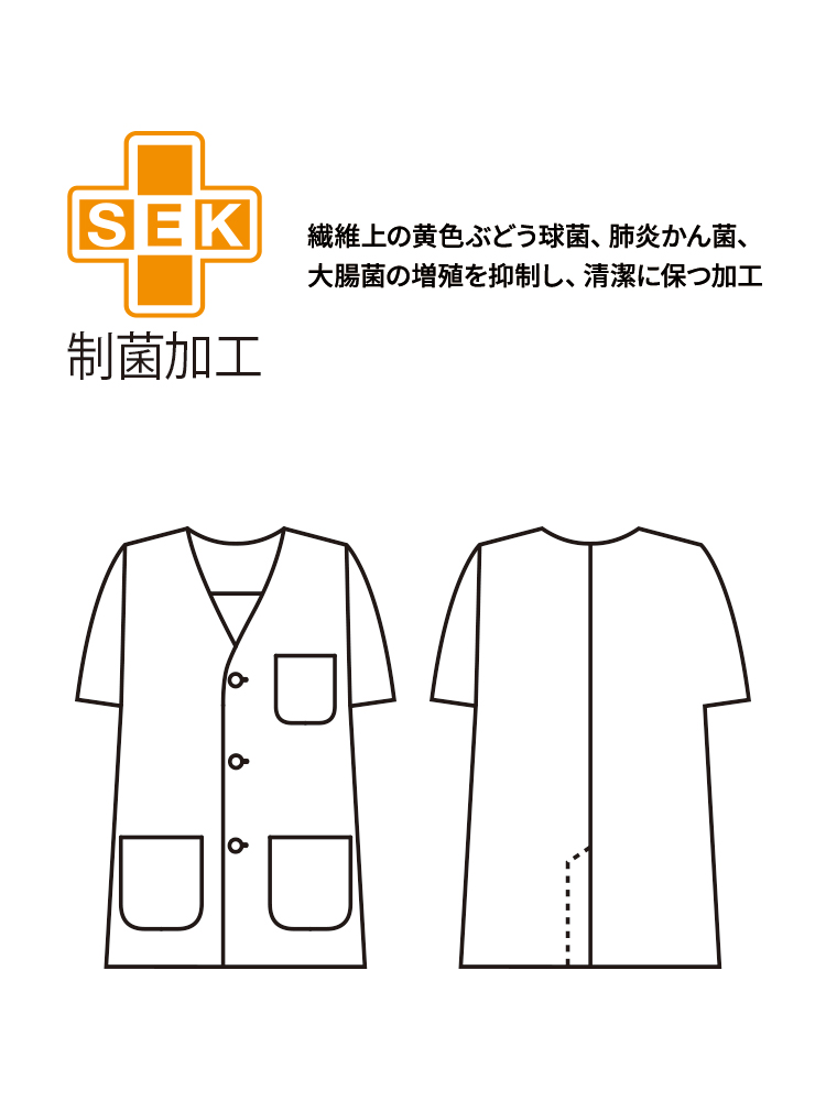 白衣の生地の中では薄いタイプのポプリン生地を使用しているため、暑い厨房、暑い季節には最適。